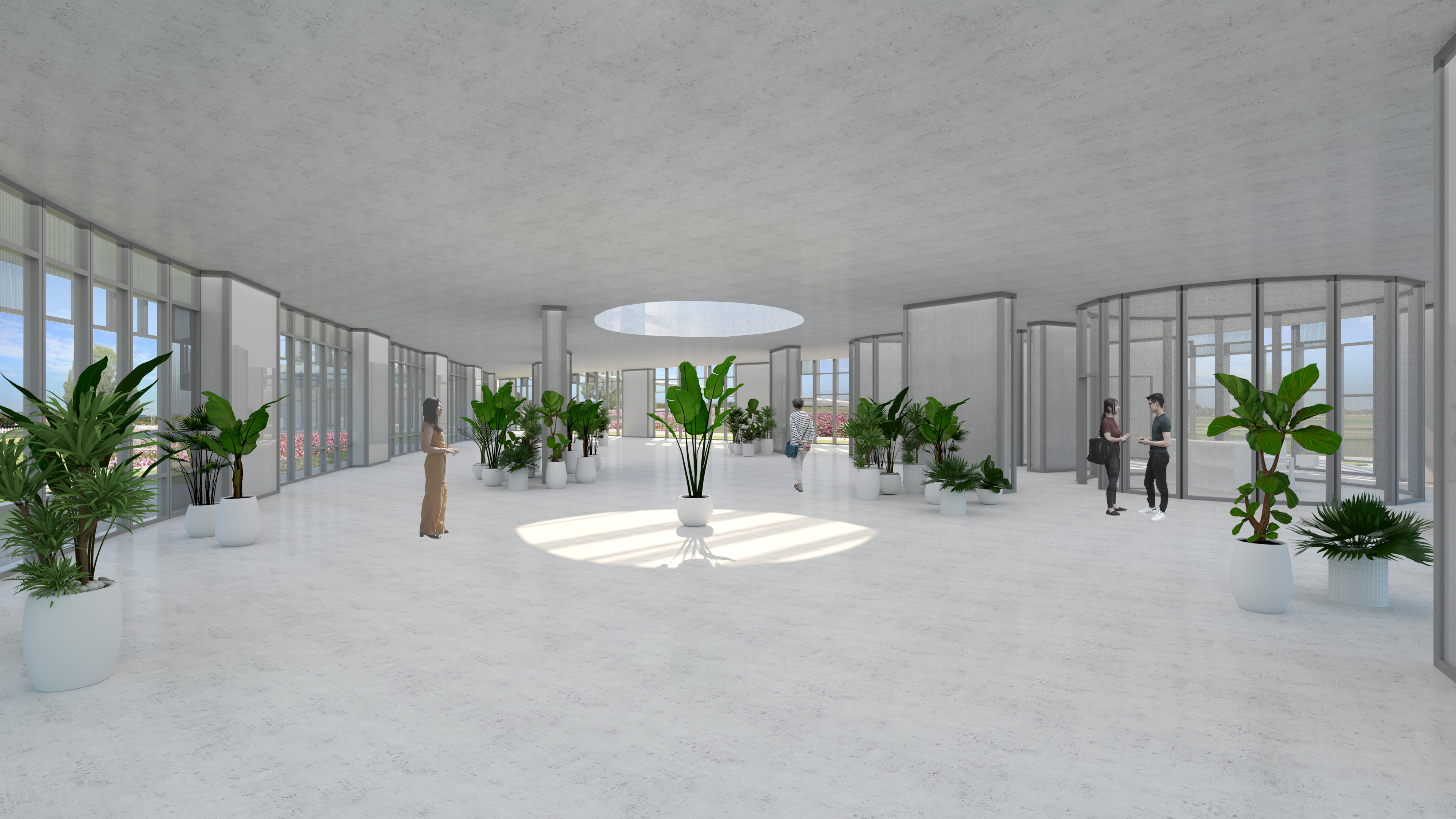 A brand new garden factory enclosed by 200M curvy-arranged aluminum frame window facade allows visitors to explore the window products through unique experience of free building plan.
